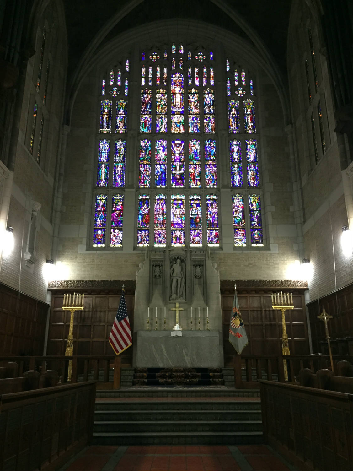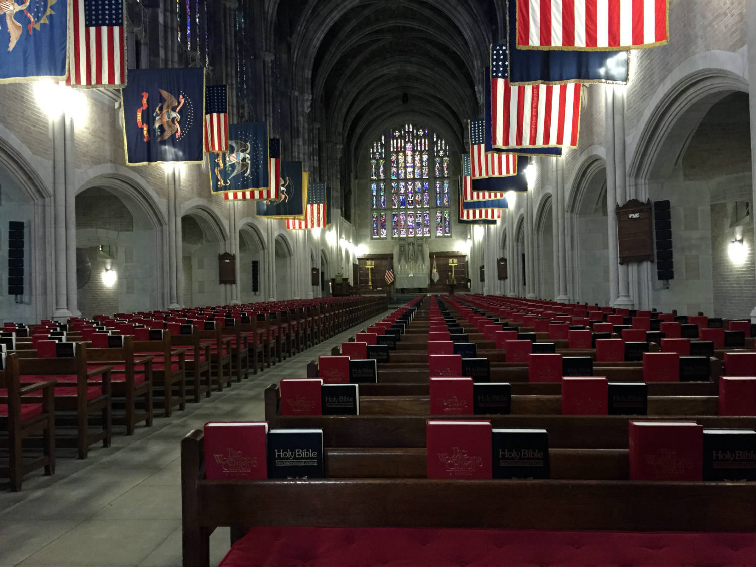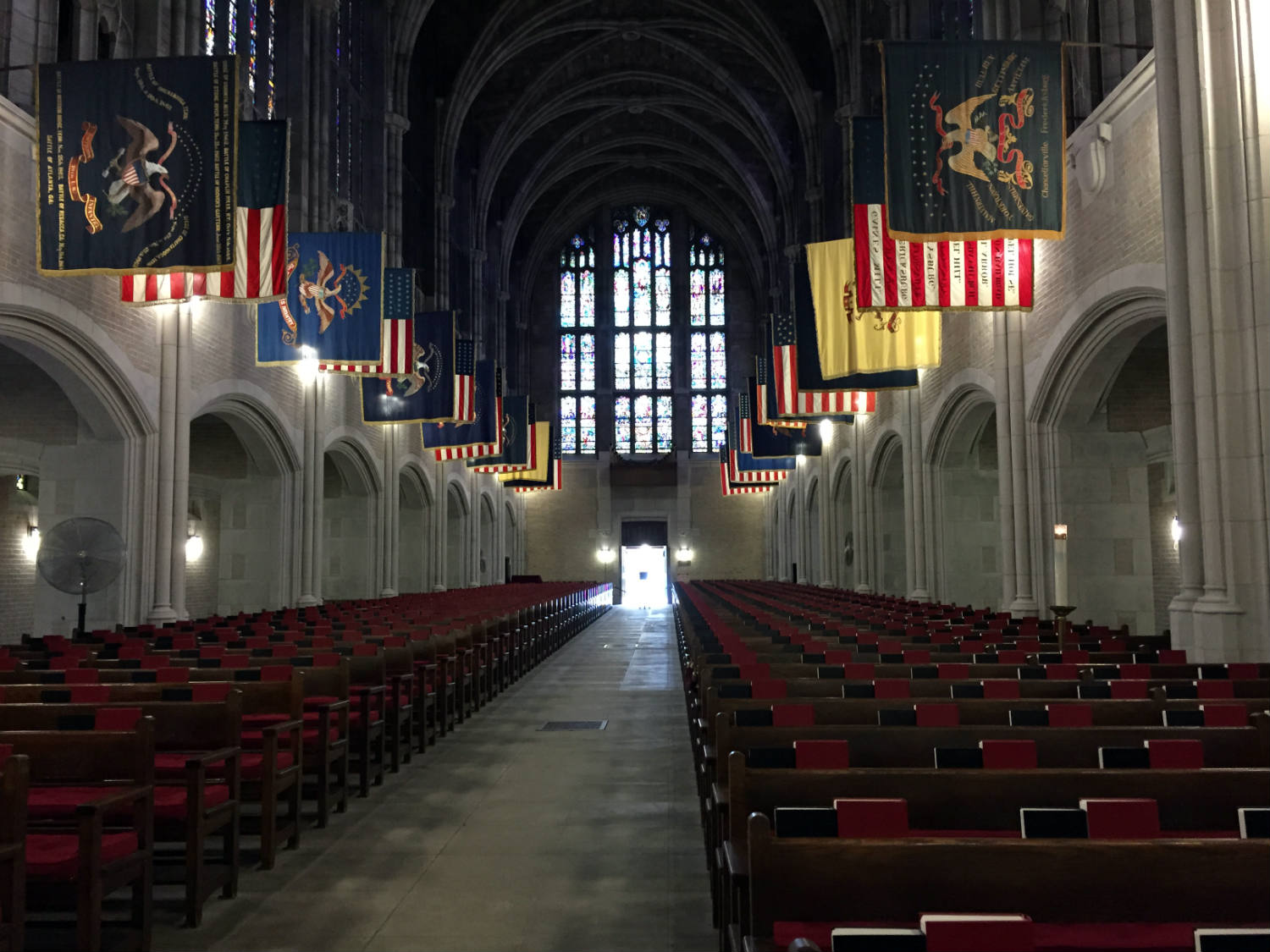 Our tour stopped at the West Point Cadet Chapel, where we were able to get out and walk through the entire chapel. The medieval looking Gothic grey, granite building was dedicated in 1910 and features the largest pipe organ within a religious building in the entire world. Though, unfortunately, no one was playing it at the time. There is also a constantly burning candle in one of the forward pews for MIA and POWs. The cadet chapel was really awesome, but I’d be lying if I said I wasn’t just a tad bummed that we weren’t able to hear the organ and that we skipped the Orthodox Chapel, the Jewish Chapel, the Interfaith Chapel, the Catholic Chapel and a Post Chapel.